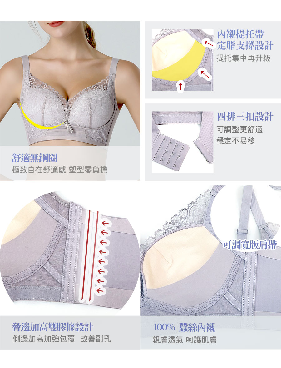 脅邊加高 雙膠條設計 側邊加高加強包覆 改善副乳